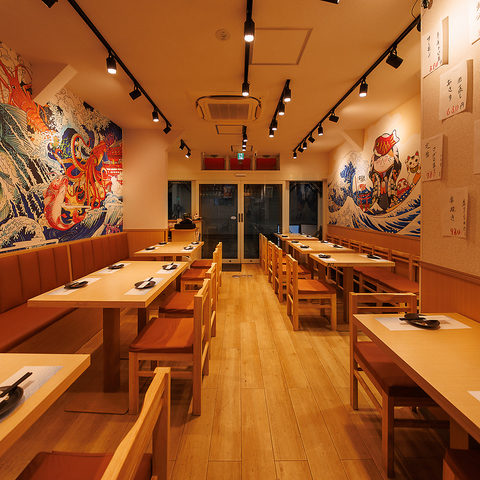 店主が目利きして仕入れる新鮮な海鮮をそのままでも、ひと手間加えた創作和食でも楽しめる海鮮居酒屋となっております。バリエーション豊富な鮮度抜群の海鮮食材を、多彩な調理にてご堪能下さい。木の温もりを感じる落ち着いた空間にてゆったり寛げるお席を多数ご用意しております。