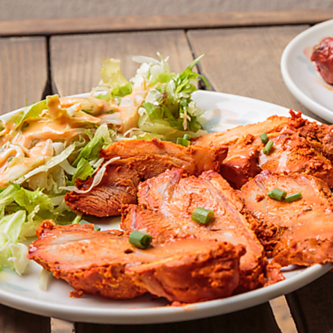 当店のおすすめは、じっくり焼いたタンドリーチキン!インド料理の代表的な料理で、特製のスパイスとヨーグルトに漬け込んだ骨付きチキンをタンドール窯で焼き上げております☆窯焼きにすることで、外はパリッと香ばしく、中はジューシーで旨味が凝縮されます。スパイスの豊かな風味が特徴的で、お酒も進みます♪