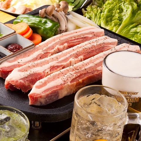 定番の和牛食べ放題の他に、サムギョプサルの食べ飲み放題が新登場!アルコール飲み放題付きでも3980円!