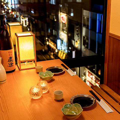 【人気の夜景席!】店内には窓側のエリアもございますので、外を眺めながらごゆっくりとお過ごしいただけます。煌びやかに装飾された空間はとってもオシャレ◎女子会や合コンにも人気の高いお席ですのでご予約の際はお早めに!最大80名様迄の貸切宴会も!ご宴会ご予約承り中!