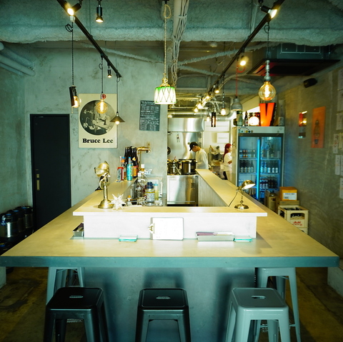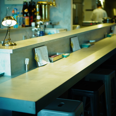 店内は無機質でスタイリッシュな空間。カウンターの材質やライトなど細部にまでこだわりました。ご友人との飲み会やお仕事帰りの1杯にも◎