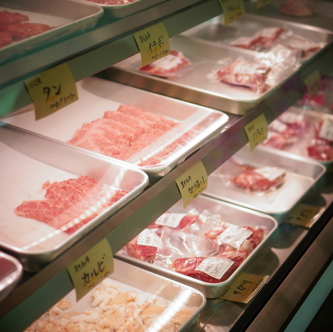 店内に入ると、新鮮なお肉や手作りのキムチ、カクテキ、オーナー直伝の薬味などがずらり♪珍しい部位などもお値打ち価格で販売しております。お洒落な空間でお酒と共に絶品お肉を味わうのはもちろん、ご家庭で色々な食べ方を楽しんでいただくのもおすすめです。
