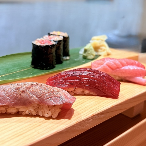 目利き職人が厳選した「その時期最高のマグロ」、豊洲はもちろん、全国から独自ルートで仕入れる「旬の鮮魚」、「こだわりの赤酢シャリで握る鮨」にコスパ抜群の「天ぷら」「酒」などをご用意。更に全国各地の銘酒を中心に、こだわりの日本酒を常時15種以上、海鮮料理や天ぷらとの相性は最高のハーモニー。