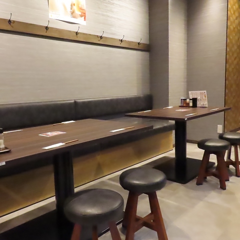 お仕事帰りのサク飲みや、恋人とのデートなど、幅広いシーンでご利用いただけるお席をご用意しております。気心知れた大切な方と共に楽しいひと時をお過ごしくださいませ。また、壁にはフックを設置しておりますので、上着やお荷物などお掛けいただけます。