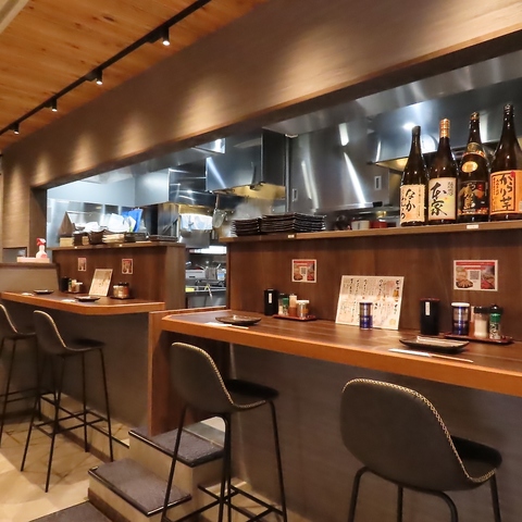 木の温もりが広がる落ち着いた店内。目の前で調理される臨場感あふれるカウンター席は、お一人様の食事や気軽な飲み、ゆったりと語らうデートにもぴったり。香ばしい匂いと音が食欲をそそる、五感で楽しむ贅沢なひとときをお届けします。