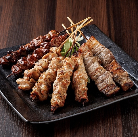 炭火でじっくり焼き上げた香ばしい串焼きが勢ぞろい!仲間と囲めば、自然と会話も弾む宴会の定番メニュー!