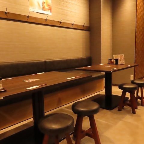 ゆったり寛げるテーブル席をご用意しております。友人や同僚との飲み会利用にもぴったり。木目調の家具が落ち着いた雰囲気を演出しております。奥側はソファーとなっておりますので、広々とお過ごしいただけます。少人数~大人数まで幅広く対応可能♪
