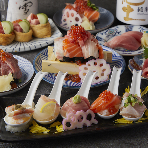 その日の仕入れに合わせた鮮魚を使った、こぼれ寿司。見た目も楽しめる一品です。