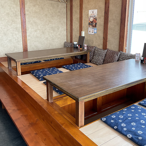 ゆったりとお寛ぎいただける掘りごたつ席は、4名様掛けを3卓ご用意しております。人数が多い場合は、仕切りを外してご利用いただけます。