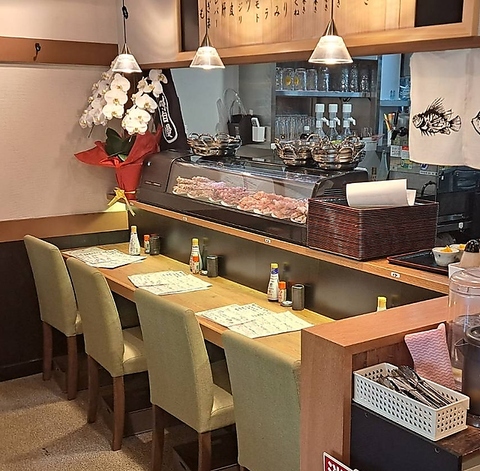 カウンター席もご用意しております。目の前で調理が見える席!ひとり飲み歓迎!店長と話しながら楽しく飲みたい方♪隣合わせで語り合いたい方にも◎.