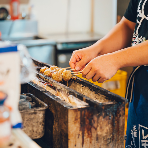 毎日手作りする「自家製つくね」は、備長炭で焼き上げることでおいしさを最大限に引き出したこだわりの一品