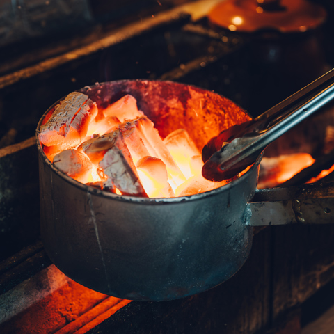 備長炭の火力は、空気を入れることで1000°を超えるともいわれています。 高い火力と遠赤外線効果でクオリティの高い焼鳥を提供できます!是非ご賞味あれ!