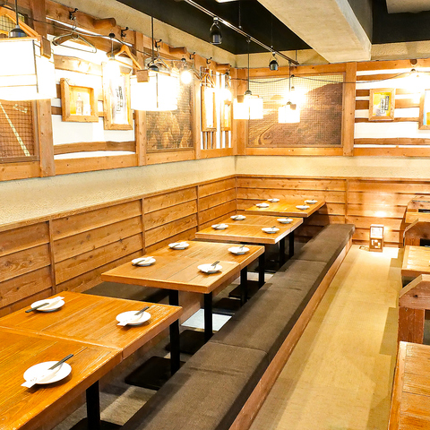 【掘りごたつ席完備】少人数からご利用いただける快適なお席を多数ご用意!個室空間で、ゆったりとお楽しみいただけます。足を伸ばしてくつろげる掘りごたつ席なら、長時間のご宴会でもリラックスして過ごせるのが魅力。荷物置き場もしっかり確保されているので快適にご利用いただけます!