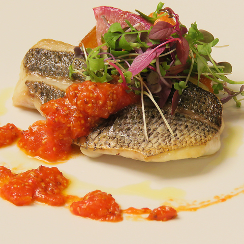 鮮魚のソテーは、新鮮な魚を使用し、外はパリッと中はふっくらと仕上げています。フレッシュトマトと粒マスタードのソースが、魚の旨味を引き立て、全体をさっぱりとした味わいにしています。トマトの甘みと酸味が絶妙に絡み合い、ヘルシーでありながら満足感のある一皿。素材の味を楽しめる、贅沢な料理です。