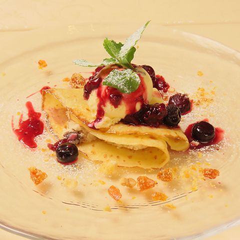 ふんわりとした生地にクリーミーなチーズと香ばしいナッツが詰まった絶品デザート◎バニラアイスと一緒に提供され、温かいベリーのソースがかかっています。甘酸っぱいベリーの風味が、マスカルポーネのリッチな味わいと絶妙にマッチし、一口ごとに幸せを感じさせてくれるデザートです。食後の贅沢なひとときにぜひどうぞ。