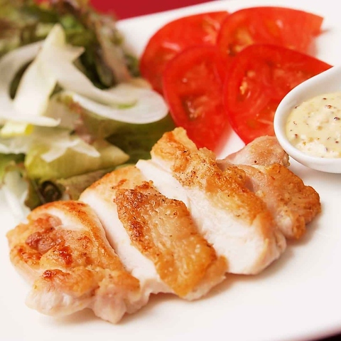 旨みの強い名古屋コーチンを香草で香ばしく焼き上げ、バジルと味噌を組み合わせた自家製ソースで仕上げた創作グリル。