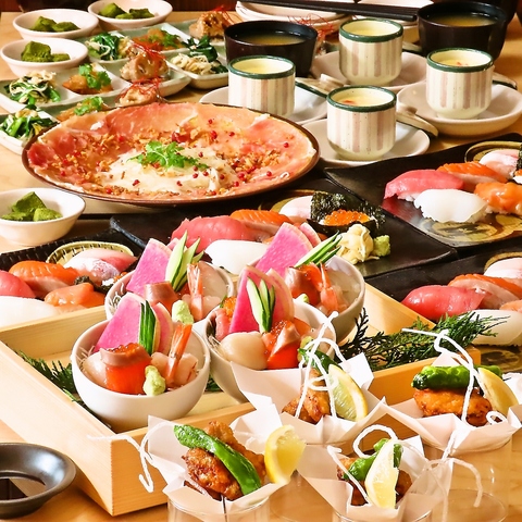 当店では120の飲み放題が付いた宴会コースをご用意しております♪新鮮で自慢の海鮮を使用した"寿司"や"刺身"を使用した宴会コースをご用意しております♪大人数でもお席をご用意できますので、ご宴会を探されている幹事様は是非、お問い合わせください♪