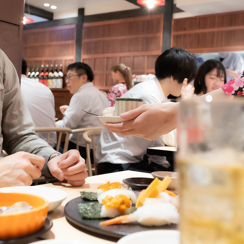 広々とした店内とテーブル間隔になっておりますので、ごゆっくりお寛ぎいただきながら美味しいお食事をお楽しみいただけます♪新鮮な海鮮を使用したお寿司をはじめ各種お料理をご用意しております♪