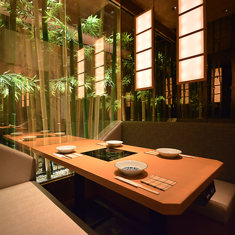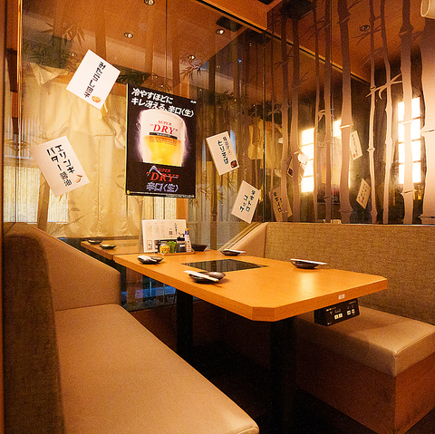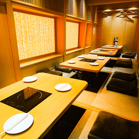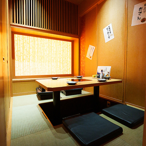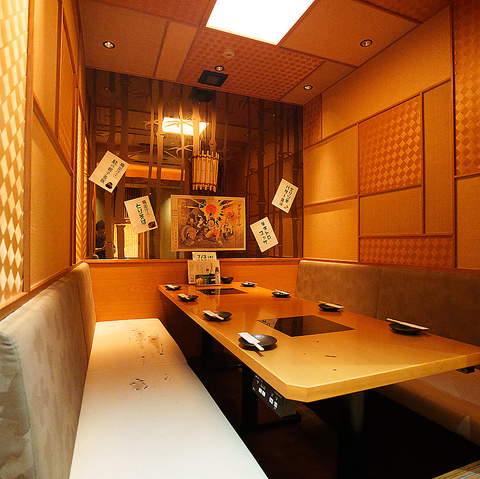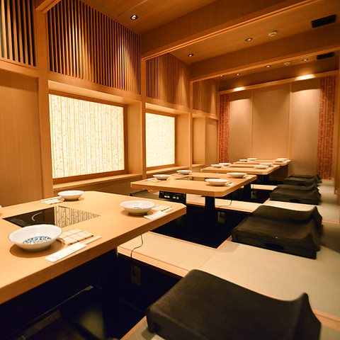 和の趣き溢れる店内は、2名様~団体様までご利用可能な個室空間。テーブル席や座敷タイプの個室席は、接待や歓迎会、送別会などの宴会にも最適。人数様に合わせて完全個室のプライベート空間を多数ご用意しております。誕生日や合コンや女子会などにもオススメです♪ランチタイムのお昼の宴会も大歓迎!!貸切もお気軽にご相談下さい!