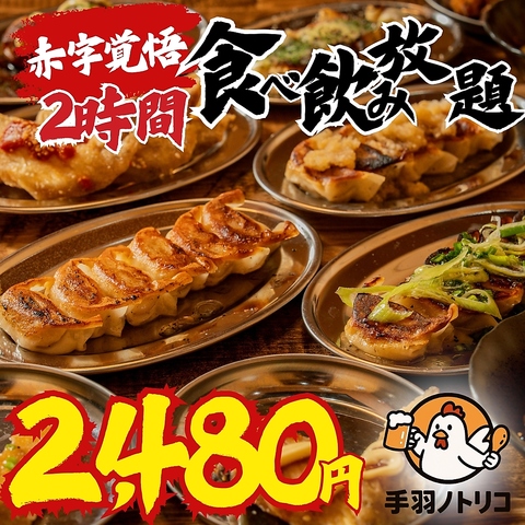 衝撃の鬼コスパ食べ飲み放題!全品食べ放題&飲み放題がなんと2,480円~とリーズナブル! 当店自慢の手羽先,鶏皮串,餃子.おでん,釜飯に素材にこだわったわ和食料理をお好きなだけ♪郡山で1番お得な飲み会は手羽ノトリコで決まり!
