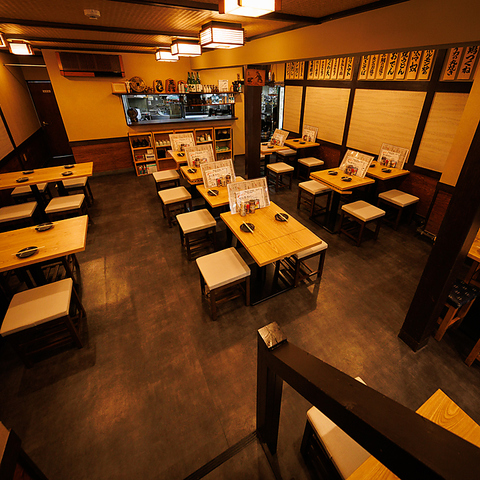 4~8名様までご利用可能なテーブル席!昔ながらの手書き風メニュー札が並ぶ壁面が、気取らない居心地の良さを演出!会社帰りの一杯や仲間との飲み会にピッタリ!幅広いシーンに最適です!