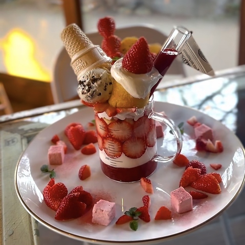 ★予約必須★『甘い実験!山盛りいちごのビーカーパフェ』