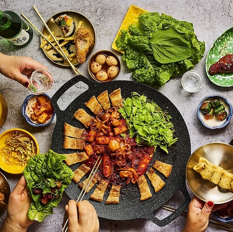 最新トレンドから定番まで、手軽に楽しめるメニューが勢揃い。チーズトッポギやサムギョプサルなど、仲間とシェアしながら盛り上がれる料理を多数ご用意しております。本場韓国にいるようなポジャンマチャ(屋台飲み)の雰囲気をお楽しみください。