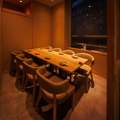 おしゃれな和モダン空間で、落ち着きのある雰囲気を演出する個室をご用意。木の温もりと間接照明が織りなす上質な空間は、接待や会食、記念日など大切なひとときに最適です。周囲を気にせずゆったりと過ごせるため、ご友人同士のお食事やご家族でのご利用にもおすすめ。人数に応じたお部屋で、特別な時間をお楽しみいただけます。