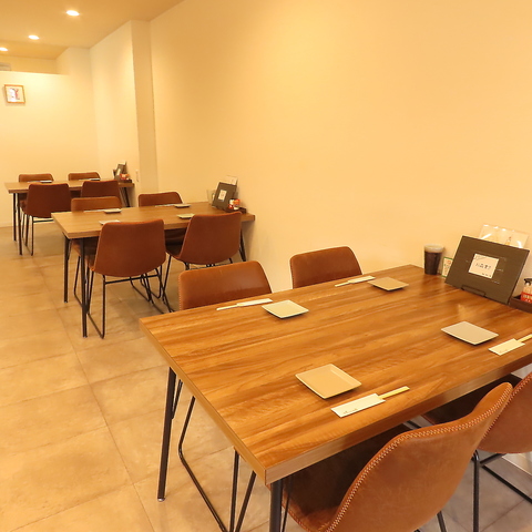広めなテーブル席は、仲間と楽しいひとときを過ごすのに最適です。ゆったりスペースで食事を囲み心温まる会話も楽しめます。友人や家族との集まりや特別なイベントにお祝い事にもご利用いただけます。また貸切にも対応しておりプライベート空間も楽しめます。ご利用の際は事前にお店にお問い合わせください。