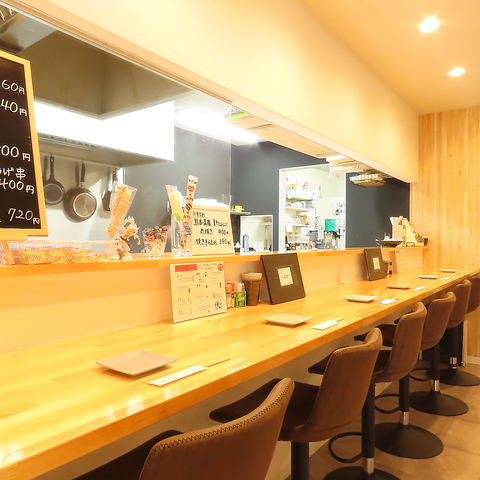 国産の新鮮な肉を使用した焼鳥や、熊本産の旬な串魚を自信を持って提供しております。どちらも厳選された素材を使い丁寧に調理することで素材本来の旨みを引き出すことにこだわってます。焼鳥は鶏肉の各部位の特性を活かした焼き加減で、外は香ばしく中はジューシー。また串魚は旬の新鮮な魚を串に打ち、焼き上げて風味と食感を楽しめます。