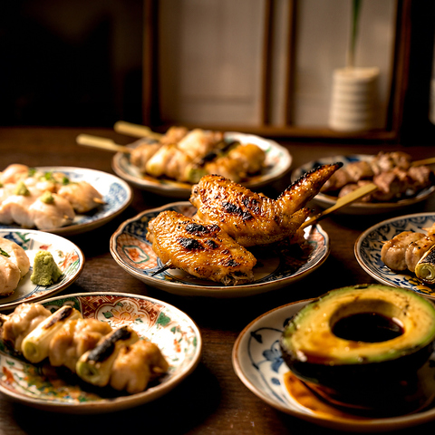秘伝のタレで丁寧に焼き上げた串焼きは、当店自慢の逸品。京紅地鶏や大山鶏など厳選素材を使用した料理を、アラカルトでもコースでもお楽しみいただけます。2室限定の個室は、少人数での会食やゆったり過ごしたい方に最適。ランチからディナーまで、特別な時間をお過ごしください。