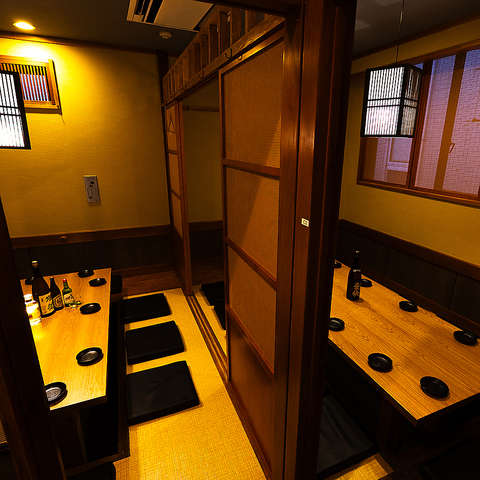 当店の掘りごたつ式完全個室(2名様~14名様)は、木の温もりあふれる落ち着いた空間で、ゆったりと特別な時間をお過ごしいただけます。足を伸ばしてくつろげる掘りごたつ席は、ご家族でのお食事やご友人との集まりはもちろん、少人数でのご宴会やビジネスのご会食にも最適。周囲を気にせず、心地よいひとときをお楽しみに