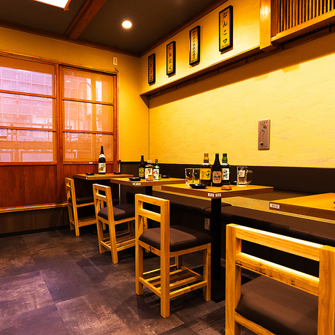 【和の温もり漂う◎亀戸の少人数個室居酒屋】掘りごたつ式の個室(2室)と、落ち着いた雰囲気のテーブル席をご用意。ランチから深夜まで楽しめる24時間営業の当店は、仕事帰りの一杯や女子会、歓送迎会にも最適。名物・炭火焼鳥や鶏餃子などの逸品料理とともに、シーンに合わせてゆったりお過ごしください。