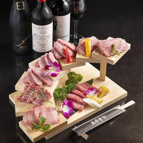 特選部位の焼肉と多彩な一品料理を楽しめる贅沢コース。ジューシーな上タンや和牛上ミノ、厚切りハラミなど、満足感のある焼肉に加え、海鮮チヂミや新鮮野菜も堪能できます。最後はアイスでさっぱりと締める、充実した内容のラインナップです。