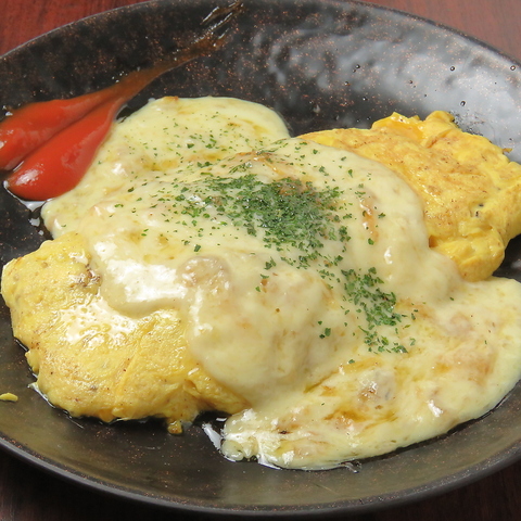 魚介も肉も魅力的だけど、ふと食べたくなるのがこういう卵料理。ふんわり焼いたオムレツに、トマトとチーズの2種ソースを添えて。重たくなりすぎない、優しさのあるひと皿です。