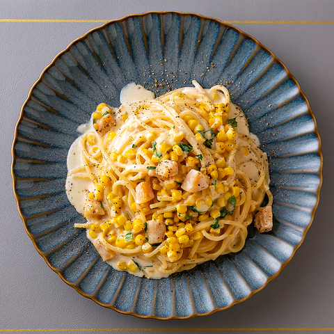 旬の帆立の甘みと、トウモロコシの濃厚な風味を贅沢に合わせた季節限定のパスタ。香り高いフェンネルが全体を爽やかに引き立て、クリームソースながら軽やかな後味に仕上げました。季節感あふれる特別な味わいをご堪能ください。