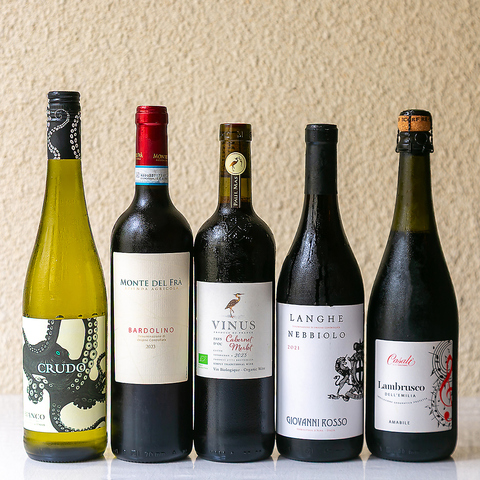 【ワインの種類が豊富】料理との相性抜群なワインを豊富に取り揃えており、お好みのお酒がきっと見つかります。