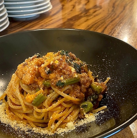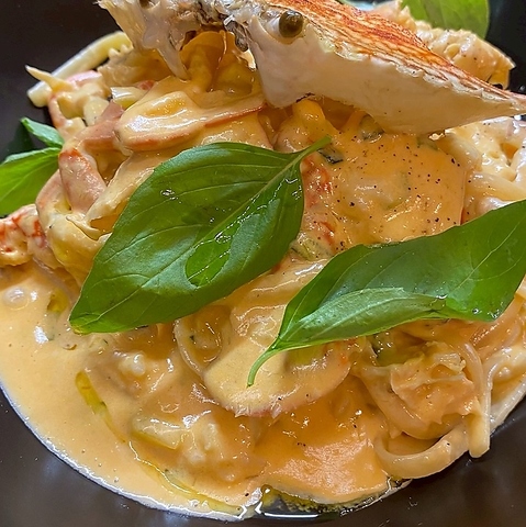 旬の蟹を使ったトマトクリーム(リングイネ)