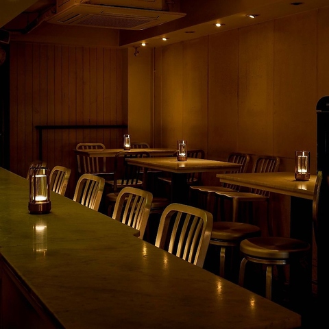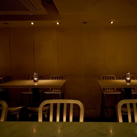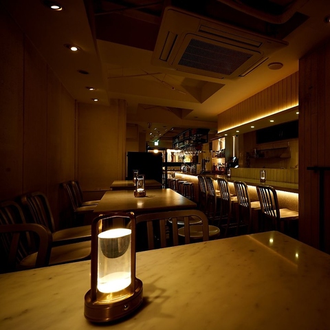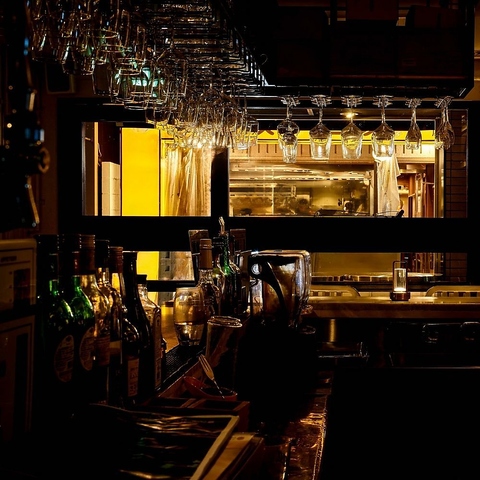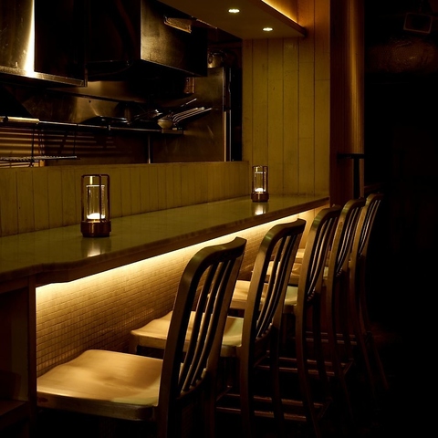 【カウンター席】目の前で調理が見れるライブ感溢れる横並びのカウンターはデートにおすすめです。もちろんスタッフとの会話も楽しめる大人な空間で特別な時間をどうぞ。お一人様やニ軒目利用にも使いやすいのでお気軽にお越しください。