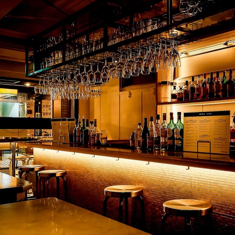 【カウンター席】目の前で調理が見れるライブ感溢れる横並びのカウンターはデートにおすすめです。もちろんスタッフとの会話も楽しめる大人な空間で特別な時間をどうぞ。お一人様やニ軒目利用にも使いやすいのでお気軽にお越しください。
