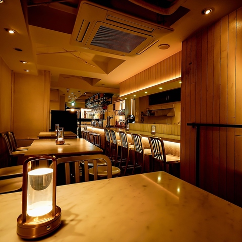 大理石を使用したカウンターはデートや女子会におすすめです。グラスワインは赤・白10種類をご用意していますのでお気軽にお試しください。