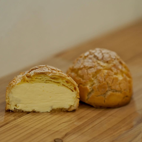 たっぷりのカスタードクリームをクッキー食感の生地で包んだ絶品スイーツです!是非ご賞味ください。