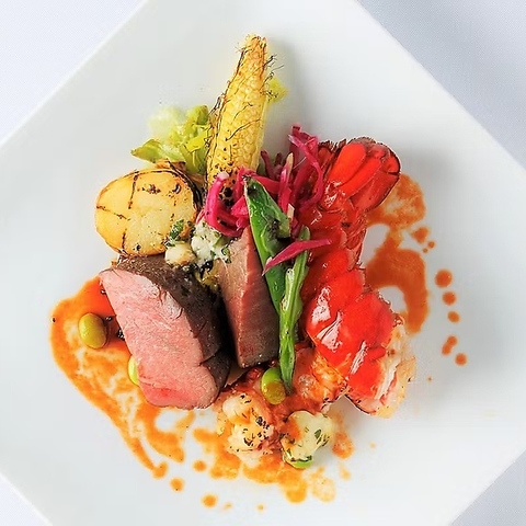 季節野菜のオードブル/スープ/本日のパスタ/市場直送鮮魚の魚料理/厳選知多牛の低温調理ローストビーフ/パン/アフター 珈琲紅茶