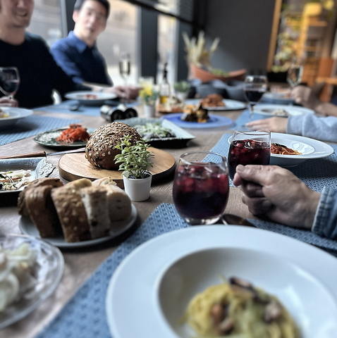 宴会や懇親会で、コース料理の対応や大皿シェアの宴会、ブッフェで交流しながらのパーティースタイルも