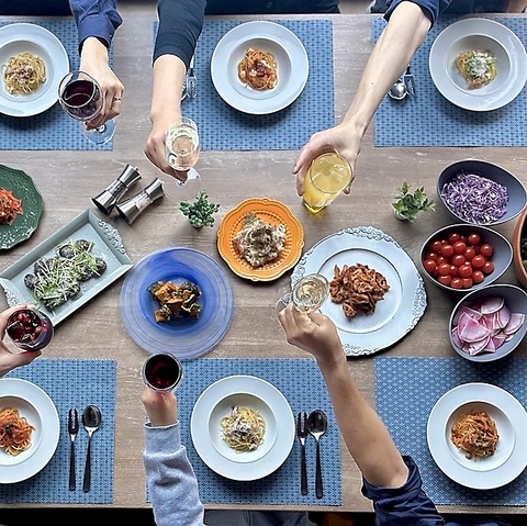 イタリアンサラダ/冷製オードブル(シャルキュトリー盛り合わせ)/スープ/グラタン料理orパスタA/本日パスタのおすすめ/ハーブ鶏のコンフィ/締めのパスタ/デザート + フリードリンク(30種類)90分間オーダー 2時間宴会 「パスタショップならでは!大満足シェアコース・飲み放題付き」