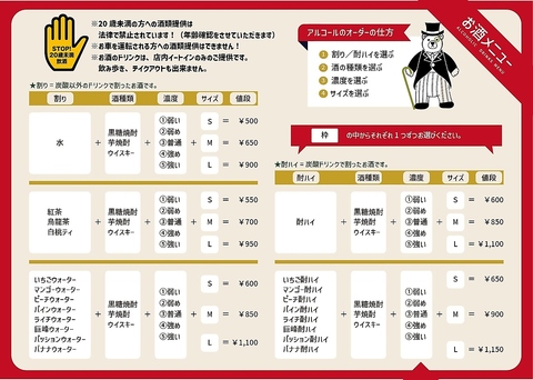 一般的な水割りや、酎ハイはもちろん、Harukiん家のドリンクすべてにアルコールをトッピング可能!タピオカ・ゼリーのトッピングも1杯まで無料!お気に入りアルコールドリンクをお楽しみください!アルコール商品も自分好みにカスタマイズ!※アルコール商品は、店内提供のみのご提供なのでお席のご予約をおすすめ。