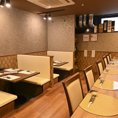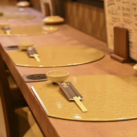 【落ち着いた大人の空間】間接照明が照らす、大人の隠れ家のような落ち着いた空間。カウンター席、テーブル席、個室と、様々なシーンに対応できるお席をご用意しております。デートや記念日、接待など、大切な人と特別な時間を過ごしたい時に最適です。ゆったりと寛ぎながら、美味しい料理をご堪能ください。