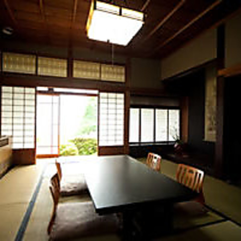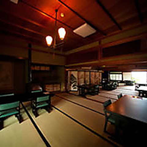 著名人の扁額や掛け軸、色紙などが飾られており、豪華な日本家屋の魅力を存分に味わうことができます。テーブルと椅子をご用意してます。
