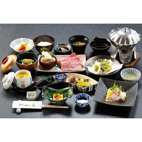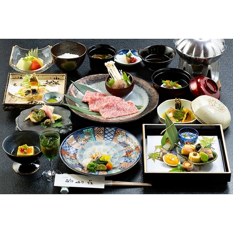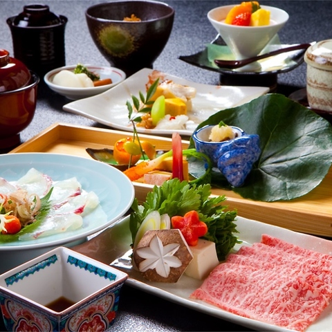 地元で採れた城下かれい・日出の鱧をはじめ、関アジ・関サバ、ふぐ、豊後牛など地産地消の割烹料理・懐石料理を味わうことのできます。※写真は豊後牛しゃぶしゃぶ懐石のイメージです。お料理の内容は季節によって変わります。