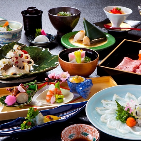地元で採れた城下かれい・日出の鱧をはじめ、関アジ・関サバ、ふぐ、豊後牛などなど地産地消の割烹料理・懐石料理を味わうことのできます。※写真は城下かれい懐石のイメージです。お料理の内容は季節によって変わります。